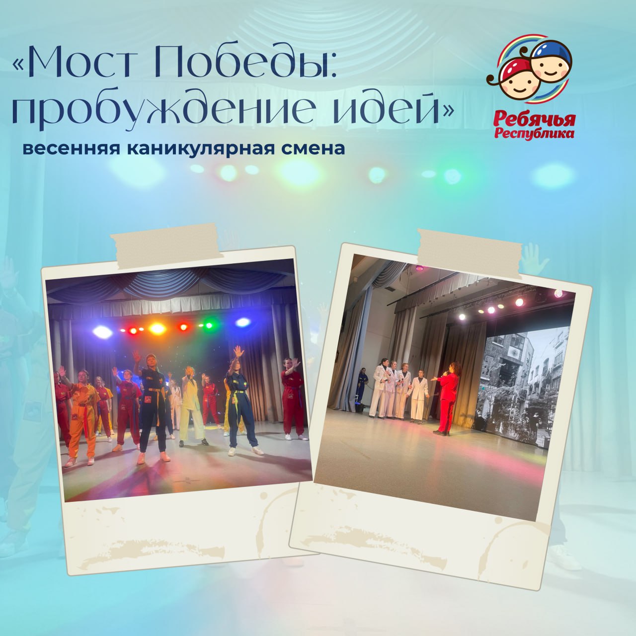 Уже состоялся торжественный концерт открытия смены, на котором ребята познакомились с сюжетом, узнали, что их ждёт в течение недели. Программа смены вдохновлена примерами героического созидания после Великой Отечественной войны и посвящена силе коллективного мышления, идей и креативных решений. Ребята будут работать над собственными проектами — символами возрождения, надежды и движения вперёд, а каждый день в «Ребячке» будет шагом к пониманию важного: даже одна идея может изменить мир.