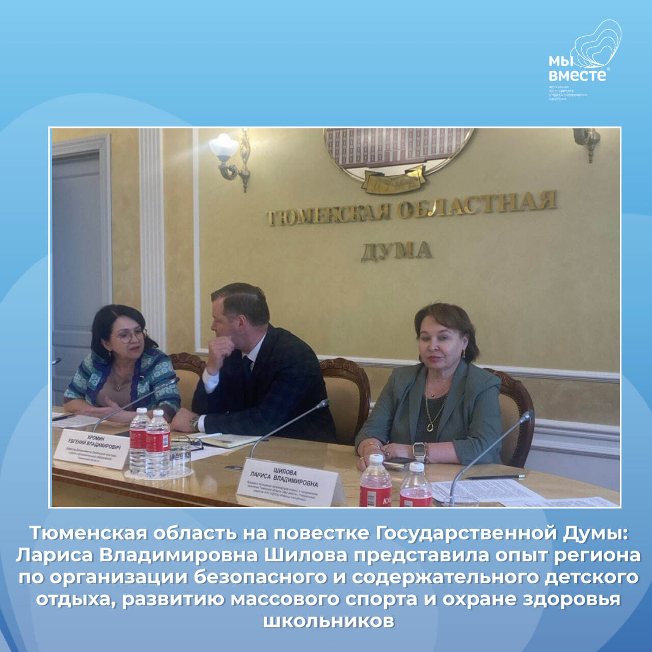 🔹 От Тюменской области и профессионального сообщества сферы детского отдыха в заседании приняла участие Лариса Владимировна Шилова, генеральный директор АНО ОДООЦ «Ребячья республика», президент Ассоциации организаторов отдыха и оздоровления населения Тюменской области «Мы вместе».