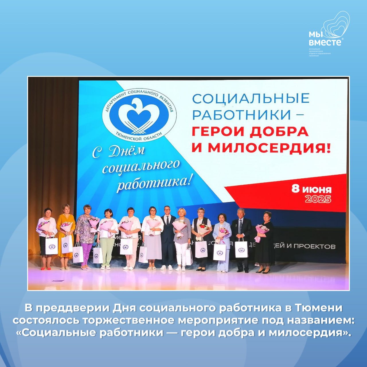 🧡 В преддверии Дня социального работника в Тюмени состоялось торжественное мероприятие под названием: «Социальные работники — герои добра и милосердия». Праздник объединил представителей профессионального сообщества, ветеранов отрасли, сотрудников социальных учреждений, членов Ассоциации «Мы вместе» и всех, кто каждый день трудится во благо других.